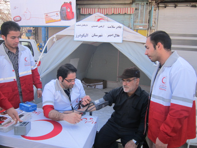 در روز اربعین حسینی ، داوطلبان جمعیت هلال احمراستان لرستان اقدام به برپایی چادرسلامت در مسیرتردد عزاداران حسینی نمودند.